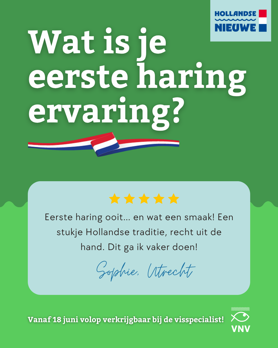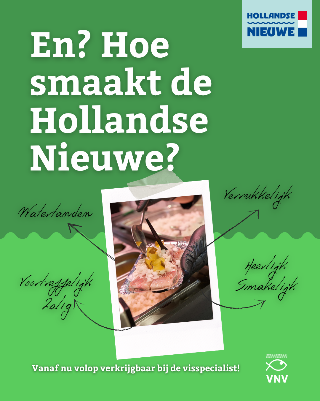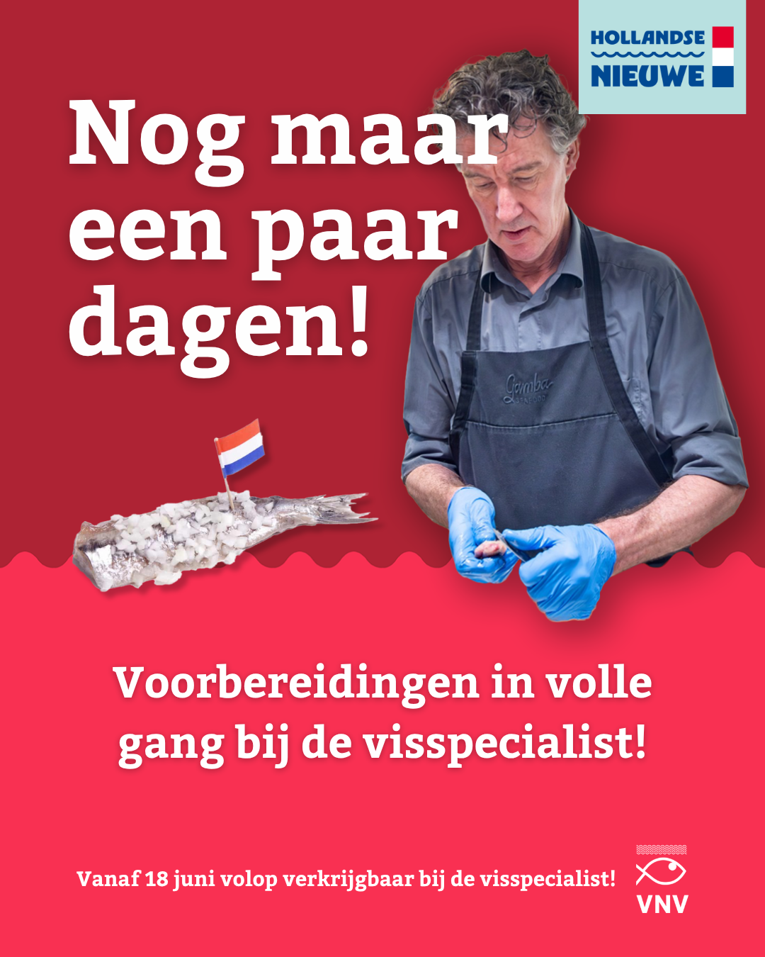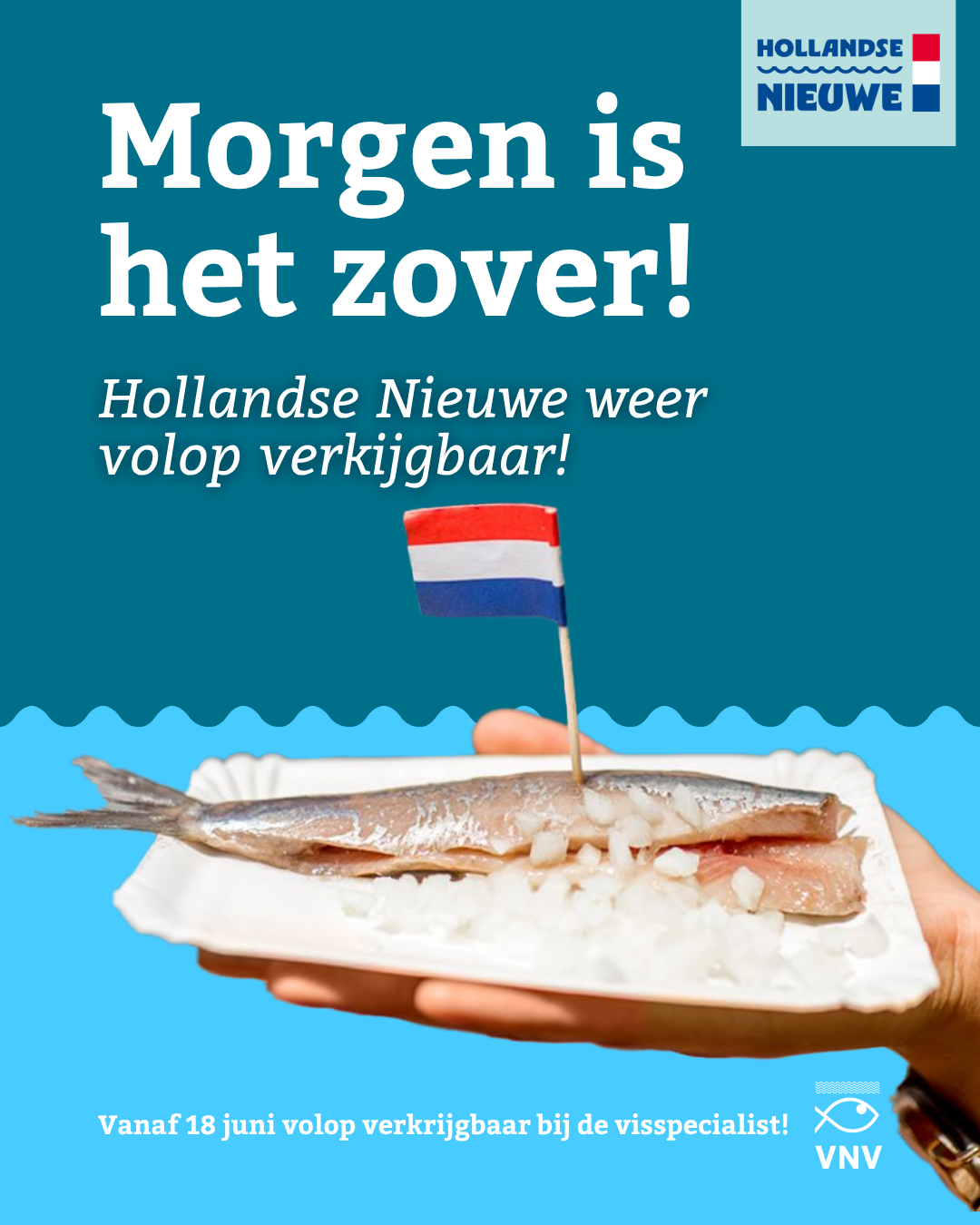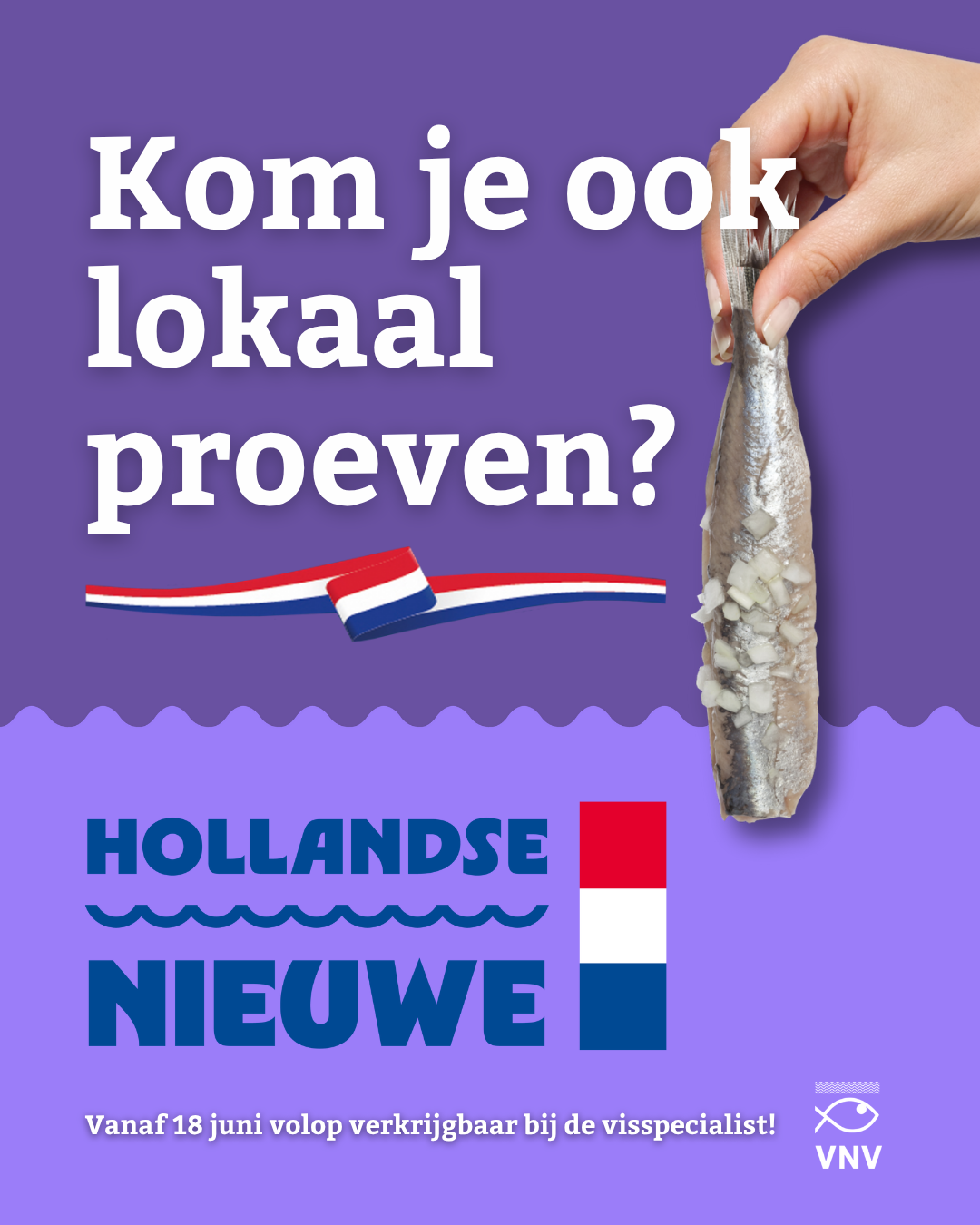 Vanaf 18 juni 2025 is de Hollandse Nieuwe weer verkrijgbaar! Het Nederlands Visbureau en VNV hebben een nieuwe campagne ontwikkeld waarmee visspecialisten stevig en professioneel kunnen uitpakken richting klanten. De vernieuwde haringcampagne zet verschillende eetmomenten en doelgroepen centraal. Haring is er voor iedereen: of je ‘m nu uit de hand eet, met een vorkje of op een broodje.